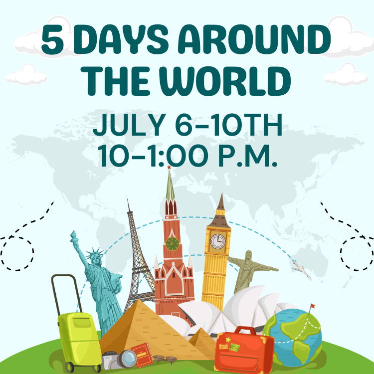 Join Miss Madi for this exciting, cultural excursion where we will explore countries around the world! Explorers will learn about a variety of countries through traditional cooking, activities, and common phrases, taking away a new cultural appreciation for the diversity of our world! Explorers must be 6+ to participate.