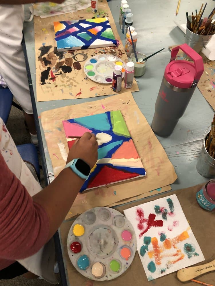 Paint Camp 1 will include painting with watercolors and acrylics on canvases and figurines. We’ll create a fabric “batik” pillow and other mixed media projects.